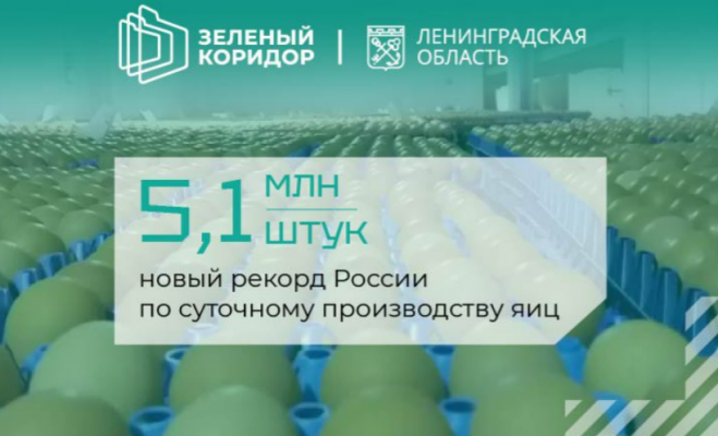 Именно столько яиц произвела за одни сутки птицефабрика «Синявинская», расположенная в Кировском районе Ленинградской области. Фабрика находится на сопровождении Агентства экономического развития.