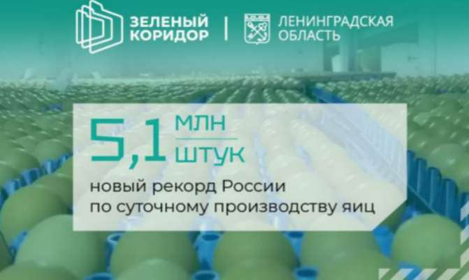 That's how many eggs the Sinyavinskaya poultry farm, located in the Kirovsky District of the Leningrad Region, produced in one day. The farm is supported by the Agency for Economic Development.